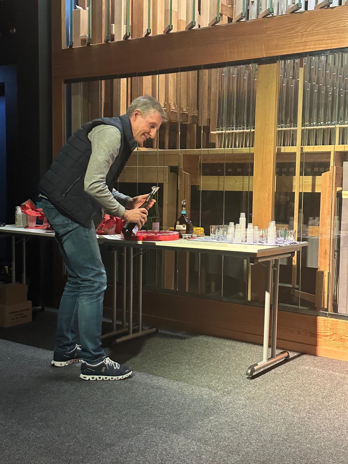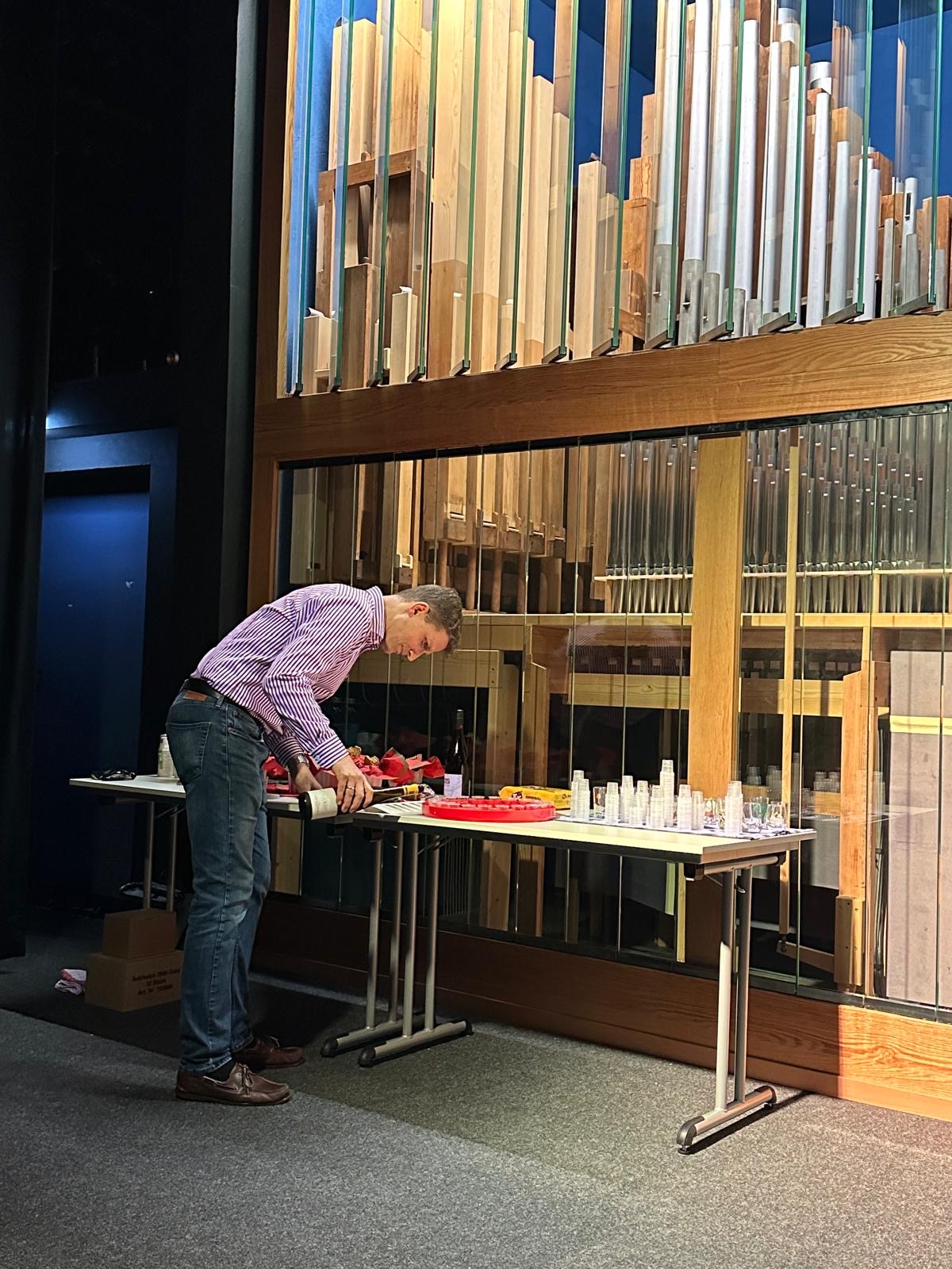 An der Orgel waren die Vereins-Vorsitzende, Verena Seuring, sowie die Vorstandsmitglieder Peter Ziegler und Johannes Haubs zu hören. Zu den Weinsorten bot Martin Jansen, ebenfalls Vorstandsmitglied, fachkundige Einführungen, die es Dank des Charmes des begeisterten Weinkenners weder an Bildung, noch an Unterhaltung fehlen ließen. Vor jedem Orgelstück wurde eine kleine Kostprobe der jeweiligen Weinsorte herumgereicht und konnte während des Hörens der Musik in Ruhe ihr charakteristisches Bukett in der Nase und ihren vollen Geschmack im Munde entfalten. So verlief der Abend in lockerer und anregender Atmosphäre und hinterließ wahrhaft synästhetische Eindrücke beim Publikum.