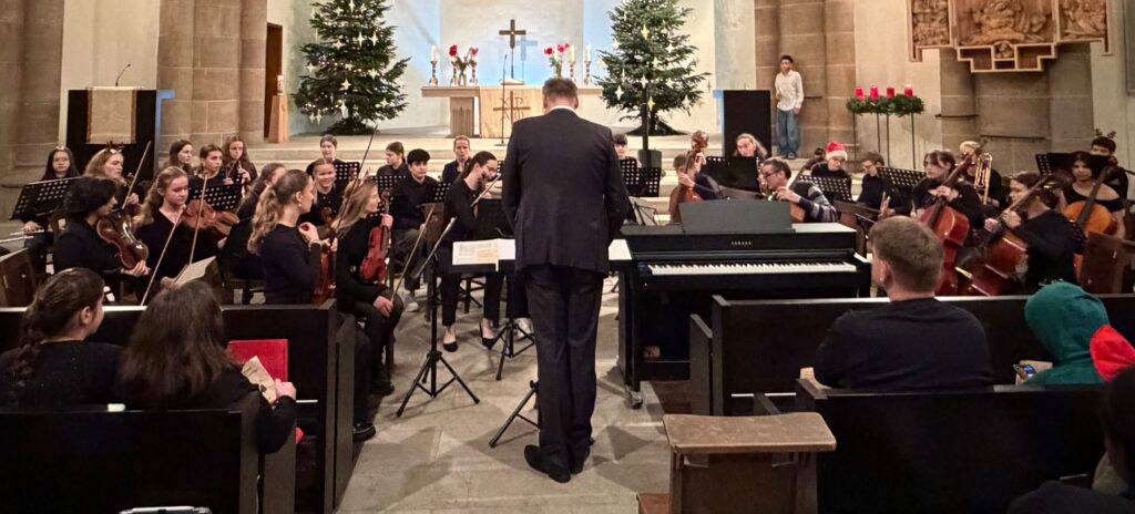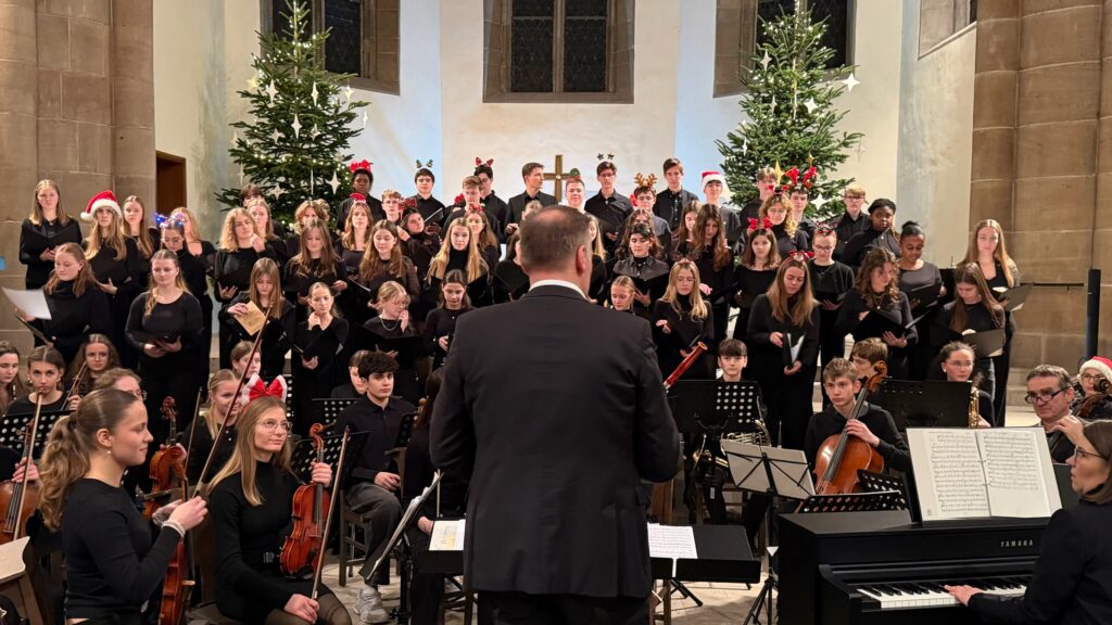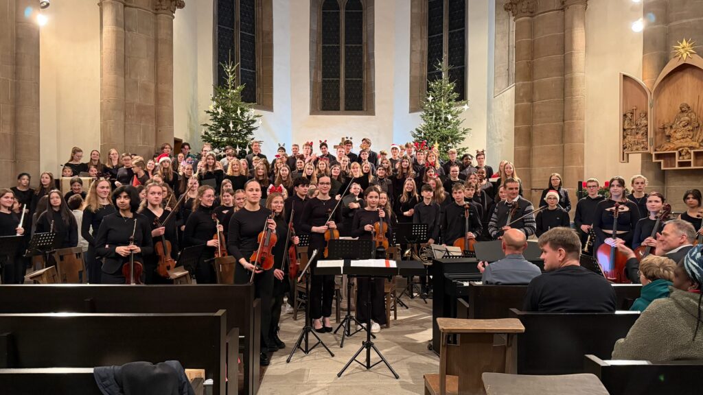 Allen Mitwirkenden möchte die Fachschaft Musik nochmals ganz herzlich danken für die wunderschönen Ohrwürmer von klassischen, besinnlichen Werken bis hin zu modernen Christmas-Songs. Es war ein gelungener Abend mit ansteckender, vorweihnachtlicher Klangpracht, der in dem von allen (sogar Ehemaligen) gemeinsam gesungenen „Tochter Zion“ gipfelte.