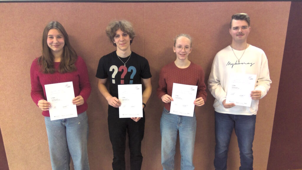 Platz 1 erreichte Frieda Bartsch, den 2. Platz belegte Jakob Kochanski, den 3. Platz erreichte Sara Fröhlig und der 4. Platz ging an Lucas Bischof.
