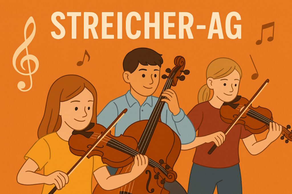 In der Streicher-AG für Anfänger kann man mitmachen, wenn man ein Streichinstrument wie Geige oder Cello neu erlernen möchte, also noch keinerlei Vorerfahrungen hat, und in der 5. oder 6. Kasse ist. Das Zusammenspiel mit anderen steht hier von Anfang an im Mittelpunkt.